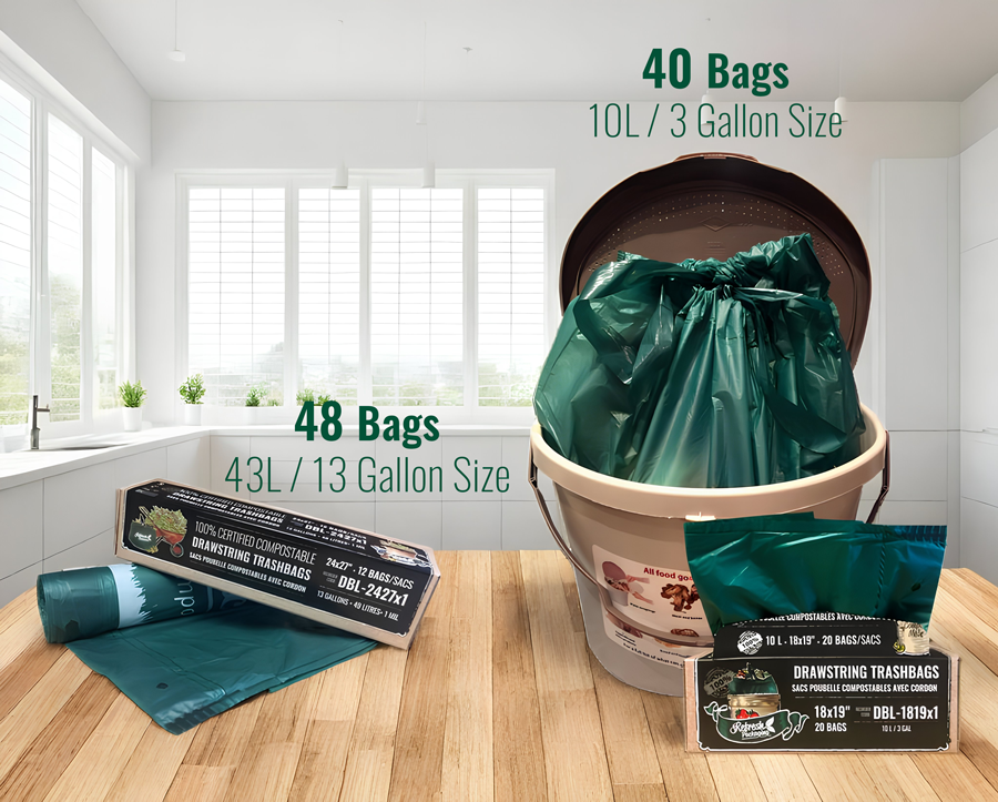 100% Compostable Bags for Foods Scraps & Regular Kitchen Garbage